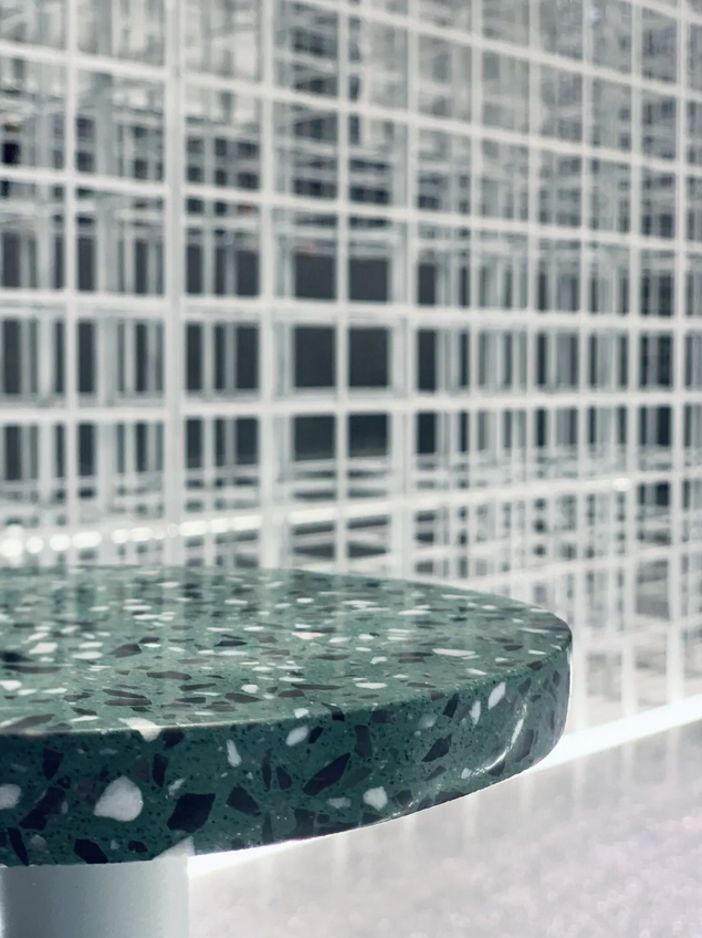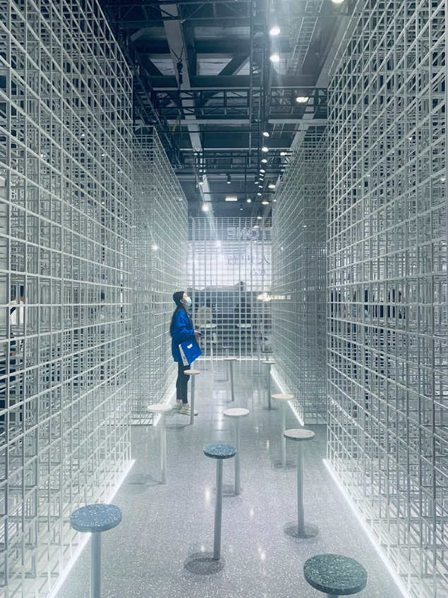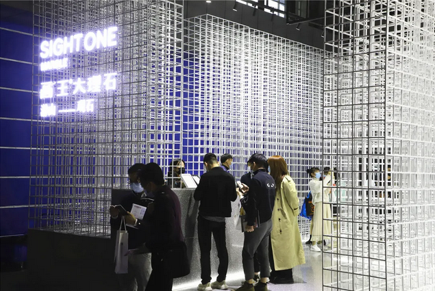 “游山-觀石”概念館由畫王·大理石聯(lián)袂共生形態(tài)傾情打造。展館突出畫王·大理石“現(xiàn)代空間美學(xué)筑造者”品牌理念,以遍野礦山為造型靈感源泉,設(shè)計(jì)師將“礦石之境”投射入空間,把采礦時山體的切面提煉成幾何立方元素,運(yùn)用方正立體和網(wǎng)格結(jié)構(gòu)極致演繹礦山礦石的層層疊疊,石材荒料與金屬材料的結(jié)合表達(dá)著自然與工業(yè)的融合與競合,透視感、立體感、層次感渾然天成,具象與抽象交替變幻。