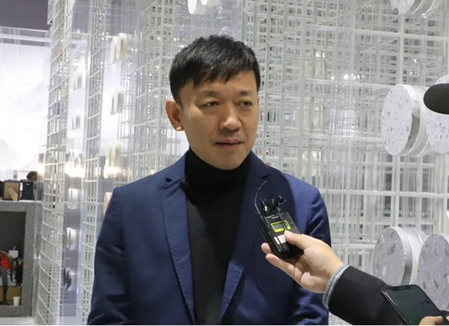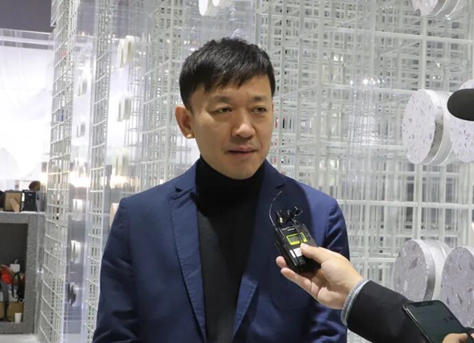 ▲畫王大理石品牌總經(jīng)理鄭學(xué)龍接受媒體采訪
