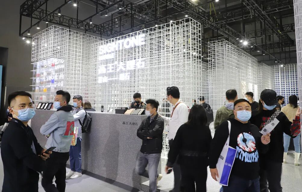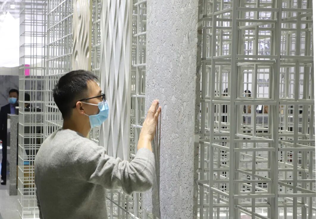 人群如潮,游客在移步換景中漸入佳境,觀石“三境”迎面撲襲。始觀,石為石——現(xiàn)場展示的真石骨料,還原石就是大自然的一種物質(zhì)形態(tài);二觀,石非石——“靈感手作”以各式各樣骨料作畫,模擬人造石生產(chǎn)過程,領(lǐng)悟石通過打破、重構(gòu),從而創(chuàng)造出新生物種的蛻變;再觀,石乃石——本次展出了多款畫王人造石精品,展示產(chǎn)品以石生石,更勝原石的質(zhì)感。